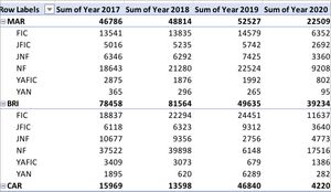 Hope attached visualization (Cross Tab or Hierarchical Bar Chart) will help you in analyzing data.