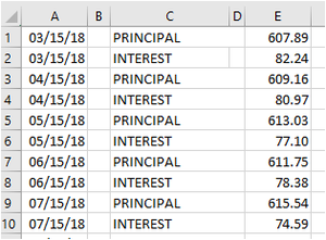 Below are a few sample rows from an Excel 2019 file, created from a .CSV file. The Excel file contains records of the loan payment transactions for an auto loan. Each payment transaction takes up...