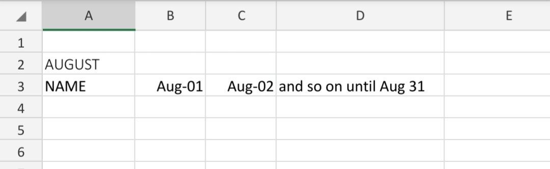 Apply the custom number format mmm-dd to B3:AF3.