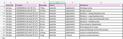 Hello! I need assistance with automating updates for the remaining dates in the 'Due date' column (Column C). Currently, we use a DateDif formula in Column B to determine the T-weeks schedule, w...