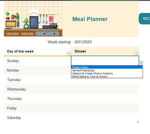 (Because I'm not a user of this template, I'd otherwise have to try to re-create your circumstances, which would take time, and probably. be off-base anyway. I do do the cooking in my household, so I'm interested in seeing how this works, but it would be very helpful if I see your attempts at using it for starters.)