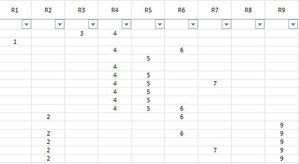 I have 9 column and several rows but i have less value in the same rows. I need to fill the data from R1, R2, R3 if have more then R4. But if R value in first row is blank and I need to ...