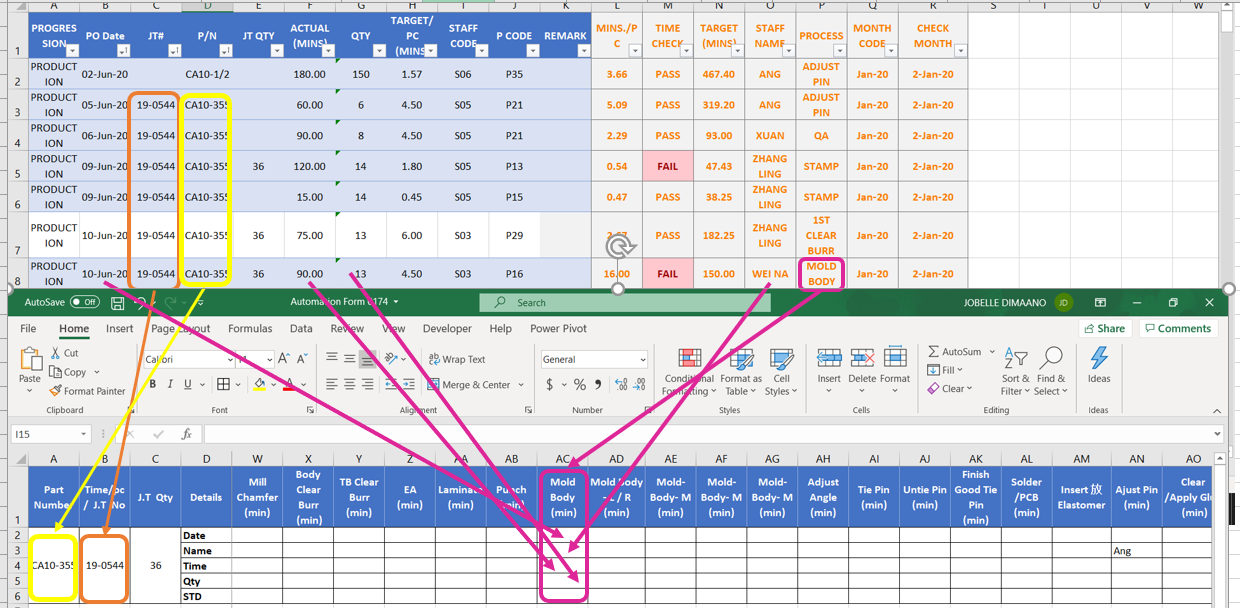 1. When i enter the JT number excel should be able to automatically collect the data of the following from another workbook.