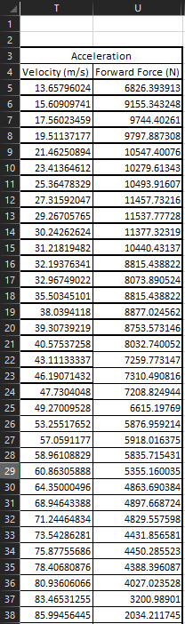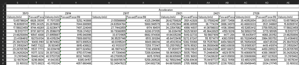 I have created the table seen below in figure 1 and would like to automate the procedure of creating table 2. Where the maximum forward force at each of the reference speeds is being used.
