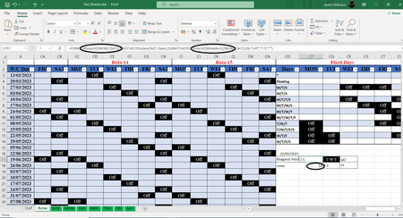 Hi everyone! Need help! In the image you can see spotted areas here is the formulae: =IF(INDEX(Rota14[[MON]:[SAT]],MATCH(CO16,date[W/C Date],0),MATCH(CR17,Rota14[[#Headers],[MON]:[SAT]],0)...