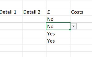 On the new lines (what appears at the rows numbered 5 and 7), it would be ideal if certain items from rows 4 and 6 could appear - the code and date - but type, Detail 1, Detail 2, Extra line needed and Amount £ would be blank, whilst the Code + description cells would contain the same drop down list as used by all other cells in that column.