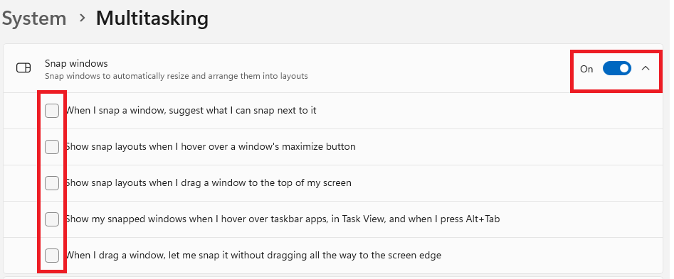 - Look for the option called "Snap windows" or "Arrange windows automatically by dragging them to the sides or corners of the screen." Toggle this switch to the "Off" position.