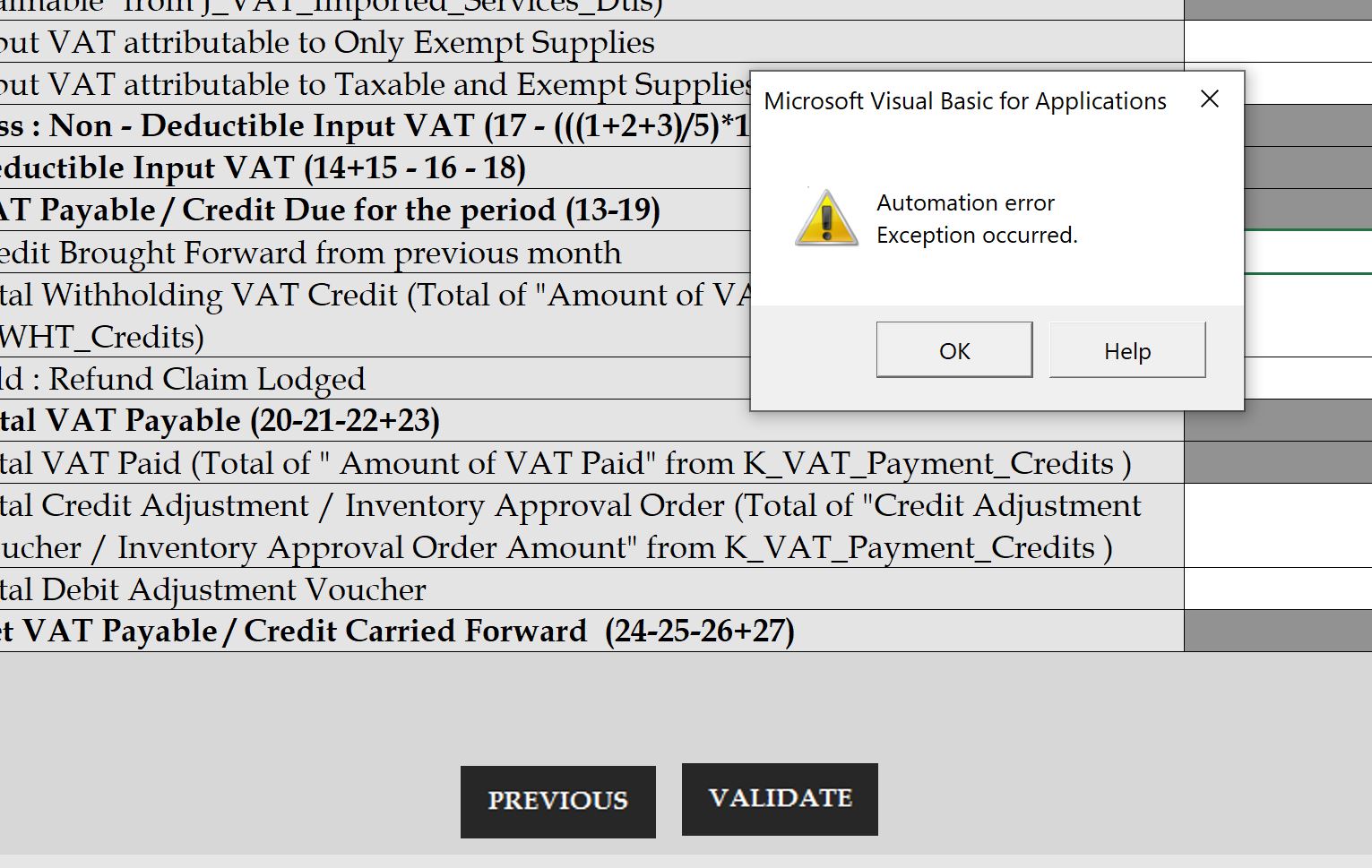 Automation error exception