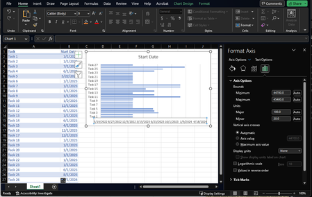 I have a bar chart that I'd like to change to show every 3 months on the x-axis, apparently a common question on the internet, but nothing shows me what to do if 'Axis Type' doesn't even exist under ...