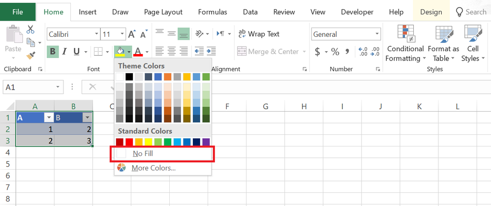Please select the table, then go to Home >> Font >> Fill Color.