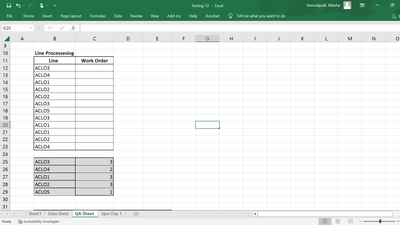 = LET( distinctLine, SORT(UNIQUE(Line)), count, COUNTIFS(Line, distinctLine), HSTACK(distinctLine, count) )- vemulnxCopper Contributor