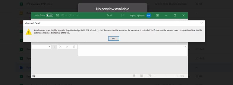 Kindly help us, we have an issue. We have a binary workbook file and it throws an error saying the file is corrupted but normal xls or xlsx files open well, but this one: (.xlsb) . Your assistance would be appreciated.