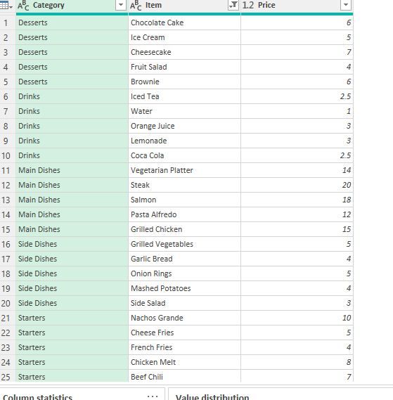 Can someone share their best practice for this type of scenario. I'm new in data cleaning, any help is appreciated. What I wanted to do is to fill the blanks in "Item" column using the "Category and Price" column. The second picture show the whole item under each category. Another one is, there's item in same category that has the same price.