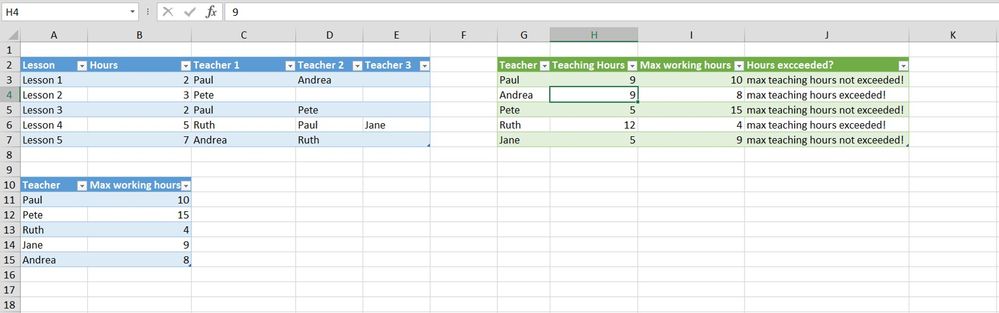 Now its easy to create an overview of how many hours each teacher is teaching with one teacher collumn.