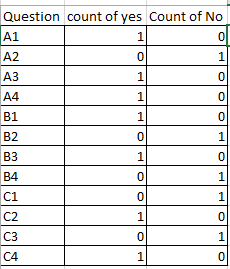 Hi, I have this table in sheet 1, I want to calculate the sum of yes/sum of (yes+ no) of the specific cells(A1, A3, A4, B1, B4, C1, C3) cells in "sheet 2", How to write a simple formula, not a big on...