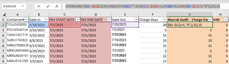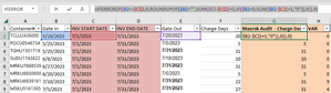 Lenni099 Riny is absolutely right that your data in columns B through E should be dates, not text. His formula is partially correct, but what I see is that (Correct) Charge Days is the number of days encompassed by these two dates, inclusive: