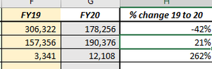 I am trying to calculate percentage change from last fiscal year using (G2-F2)/F2 on revenue But on expenses with a negative number it calculates incorrectly Any suggestions? Thanks, ...