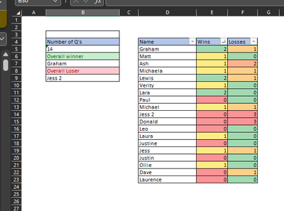 As is stands we have a 3 way tie for the winner and a tie for the loser but the formula i've got is just choosing a random name for the overall winner and overall loser.