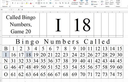 Alternatively (and maybe you have already done this), G1 can be populated with a formula that calculates the Bingo column letter based on the Bingo number; e.g.:=CHOOSE( CEILING.MATH(J1/15), "B","I","N","G","O" )That also prevents the user from entering a lower-case column letter, which would be a problem because your Find functions specify a case-sensitive search.