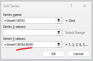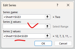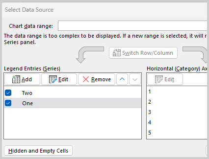 I have two columns with the same amount of data points. But when I select them to create a scatter plot, the chart will only show 1 series. I need two. How do I fix this?