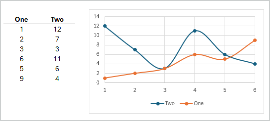 All depends on goals. In general you may plot two scatter series based on two columns, but X-axis with that will be sequential integer numbers. Other word points numbers.