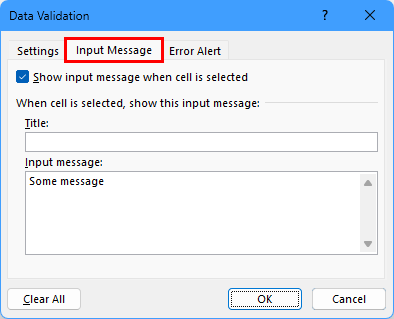 Activate the Input Message tab.