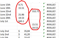 Everytime I insert a new row in excel, the cells don't seem to be recognised and the formula shows #Value. I tried formatting it into number and currency, but it doesn't work.