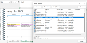 How do I change the categories in this excel template "Persoonlijke maandplanner". Now the categories are "work", "thuis"etc, but I can't find where to change this.