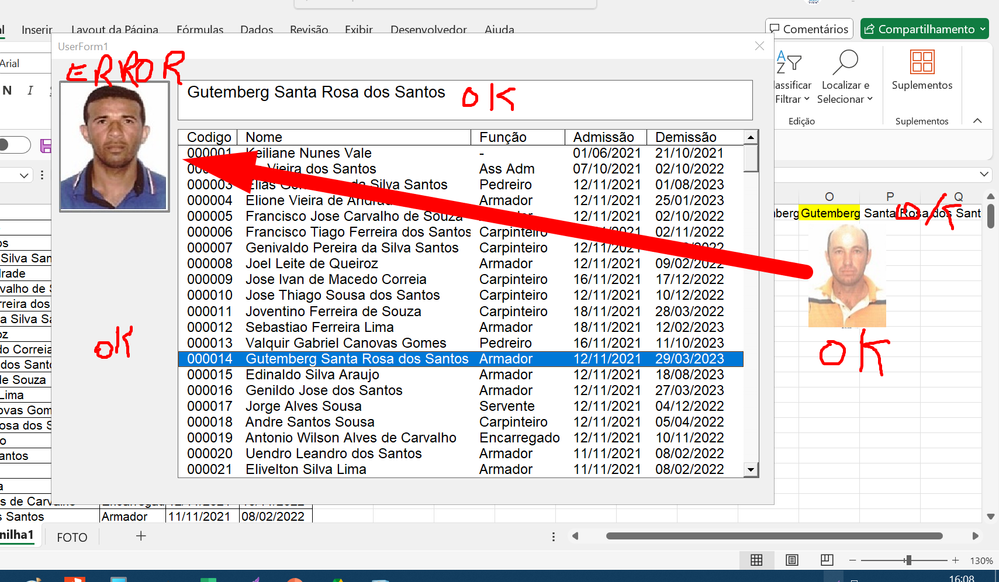 Set wsFotos = ThisWorkbook.Worksheets("FOTO")' Obtém o nome selecionado na ListBox (coluna 1)