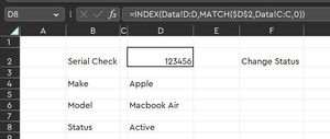 If i selected Faulty in the dropdown based on the serial number, i would like that to change the data in the data tab (in this example Data Tab D2 to Faulty).