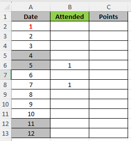 I just found out from my boss that the points system will be different and that it only applies to participation on weekends. An employee who completes a course on a Saturday gets 4 points, on a Sunday gives 6 points. The points change when an employee has attended more than 7 courses. So from the eighth course, participation on a Saturday will give 5 points and participation on a Sunday will give 7 points. There's one sheet per month, so the formula must take all sheets into account so that the summary on the total sheet is correct. Please see the attached file.