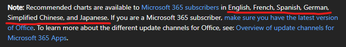 I can not find the "Chart Recommendations" feature on Office Excel 365 WEB. It indicates on https://support.microsoft.com/en-us/office/create-a-chart-with-recommended-charts-cd131b77-79c7-4537-a438-8db20cea84c0#ID0EBBH=Web that this feature exists. I am not sure if it is a version problem, the feature does not exist any more, or a problem in my interface.