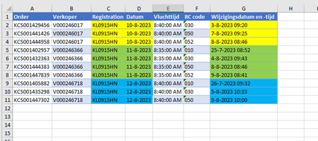 I have a question I am looking for a formula of VBA for the following comparisation. I want to filter or mark only the latest date and time in column G, from which data in column C a...