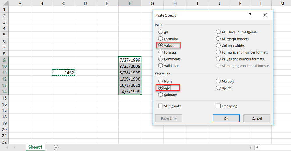 - Select the dates that changed, and then press Ctrl+Alt+V to open the Paste Special dialog box.