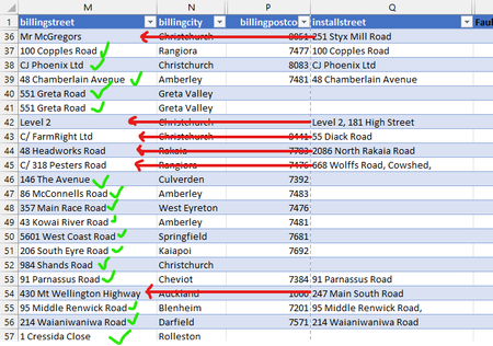 Hi, Thank you for your help. It didn't quite work. I copied it into row T and it picked up the address in Q, which I want where they differ from M, But it only gave me a 0. I have tried swapping the cell values around but I only get either all of M or all of Q with 0 values. I have tried trying to get that to the reference M2 but to no avail. Would appreciate any further help you can give me.