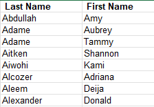 I'm trying to compare two different excel files - by finding the names that do & don't match. Below I've post a snippet of each excel files The only way I've been able to get this sorte...