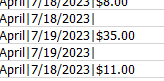 Hello, This is the formula I used. How do I get the negative values to show? =CONCATENATE(C2,"|",(TEXT(D2,"M/DD/YYYY")),"|",(TEXT(E2,"$##.00;;@")))