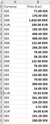 Sorry for bad cropping, but you were correct in your assumption, first row with numbers is 11. I want the end result to look as it looks now, and I want to be able copy B11 to B14 and get 100,00 EUR (as dictated by cell formula, not seen here) in the target cell. Any conversion has already been carried out, and it is purely formatting which I want to ascertain.