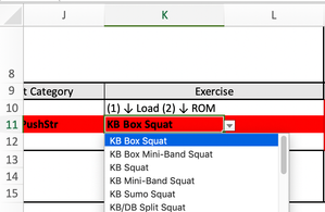 For example, if Reverse_Lunge was selected in K11 in the above image, I want the dropdown menu in L11 to reference the line of data 1 row below my original named range 'Reverse_Lunge.'