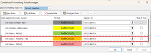I have a training matrix setup which records training expiry dates, I have used conditional formatting to highlight cells which - Are blank - training to be completed (yellow) - Contain N/A (grey) ...