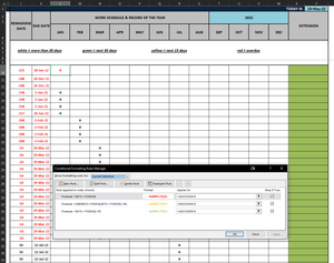Good day everyone! I am working on a barebones PMS for our vehicles and i am stuck with the conditional formatting of cells. As you will see below in the attached image i need to format "x" w...