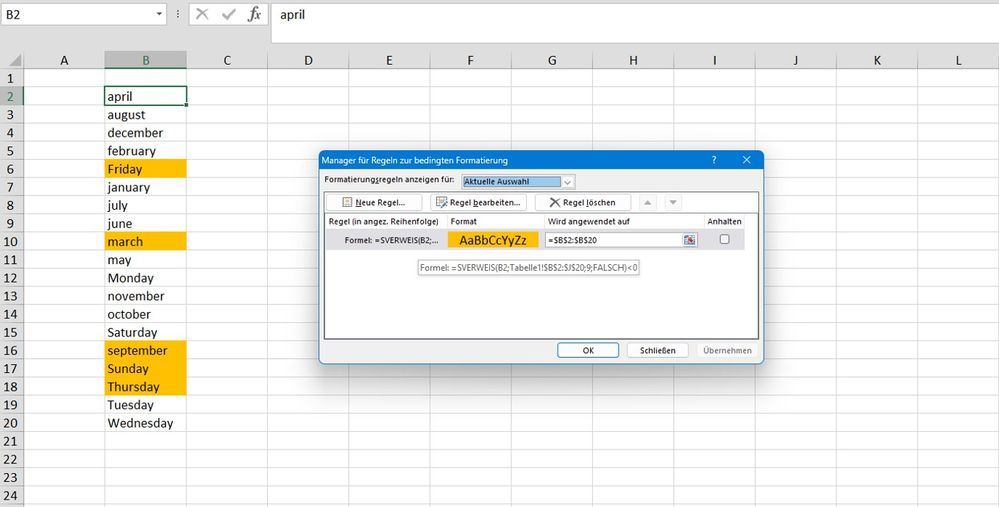 =VLOOKUP(B2,Tabelle1!$B$2:$J$20,9,FALSE)<0
