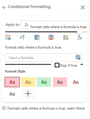In my online / web interface here is my Conditional Formatting (add new rule) window: