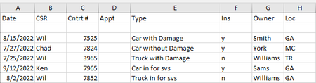 Trying to highlight cells in columns B & C if Cell in column E contains "Car" and Cell in column H = "GA"