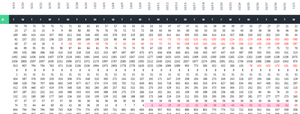 where date_row is the row with dates at the top (absolute reference), and data_row is the first row with numbers (relative reference).