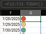 you can create a couple conditional formatting formulas or just use the above formula - TODAY() to get a number 0 for today, ,1 for tomorrow, >1 for more days. Then use 3 color scale formatting to do all 3 colors: