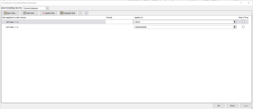 Any suggestions or help would be appreciated. If you need to see the CF rules for the whole Worksheet, or the formulae applied to any/all cells in the Worksheet, let me know. TIA