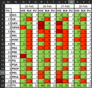 Still holding down Ctrl, also select T3:T20 and finally Q3:Q20.