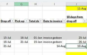 I have a client spreadsheet and I am trying conditionally format the cells to highlight in color based on the number of days that have passed since the "Drop off" (Column F) in the same cell/column (Column J)