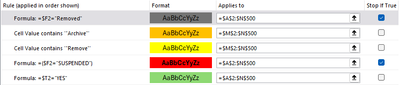 Hopefully this isn't an impossible task and I'm just missing a simple workaround, and I'd preferably love a way while involves not making an individual rule for each row (as that would be quite time consuming!).